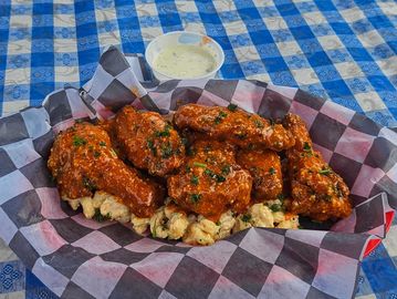 Crispy, golden-fried wings tossed in our house-made Buffalo, Hot Honey, Hungarian dry rub, or Garlic Parmesan sauce. Served with blue cheese or ranch.