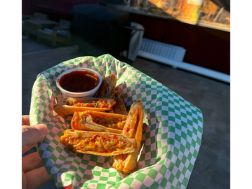 Meat lovers pizza rolls served with a side of marinara sauce